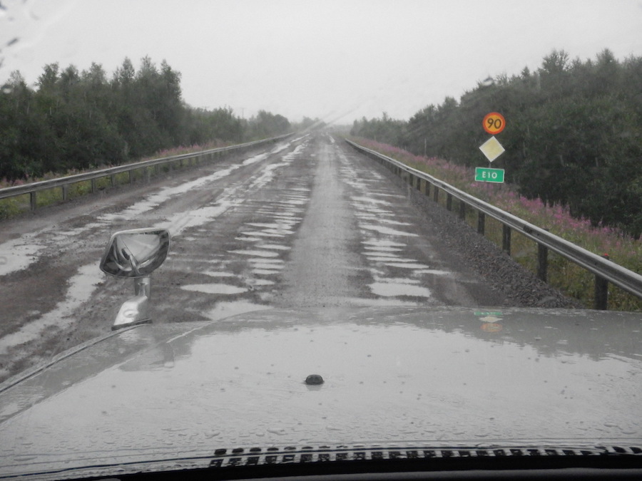 昨日の未舗装路を再び走ってキルナの街へ戻りました。下回りが泥だらけになる・泣。