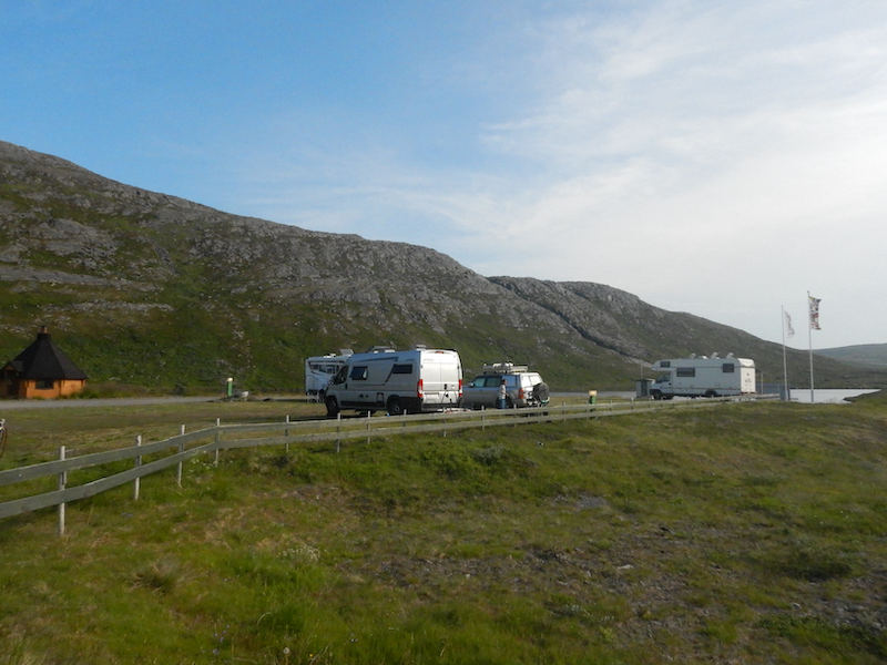 せっかく念願のノールカップに到達した記念の夜なのに、なんとなく盛り上がりに欠けました。不思議な雰囲気の漂うキャンプ場なのです。なんだか周囲のお客さんも、いつもと感じが違います。