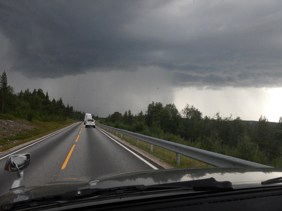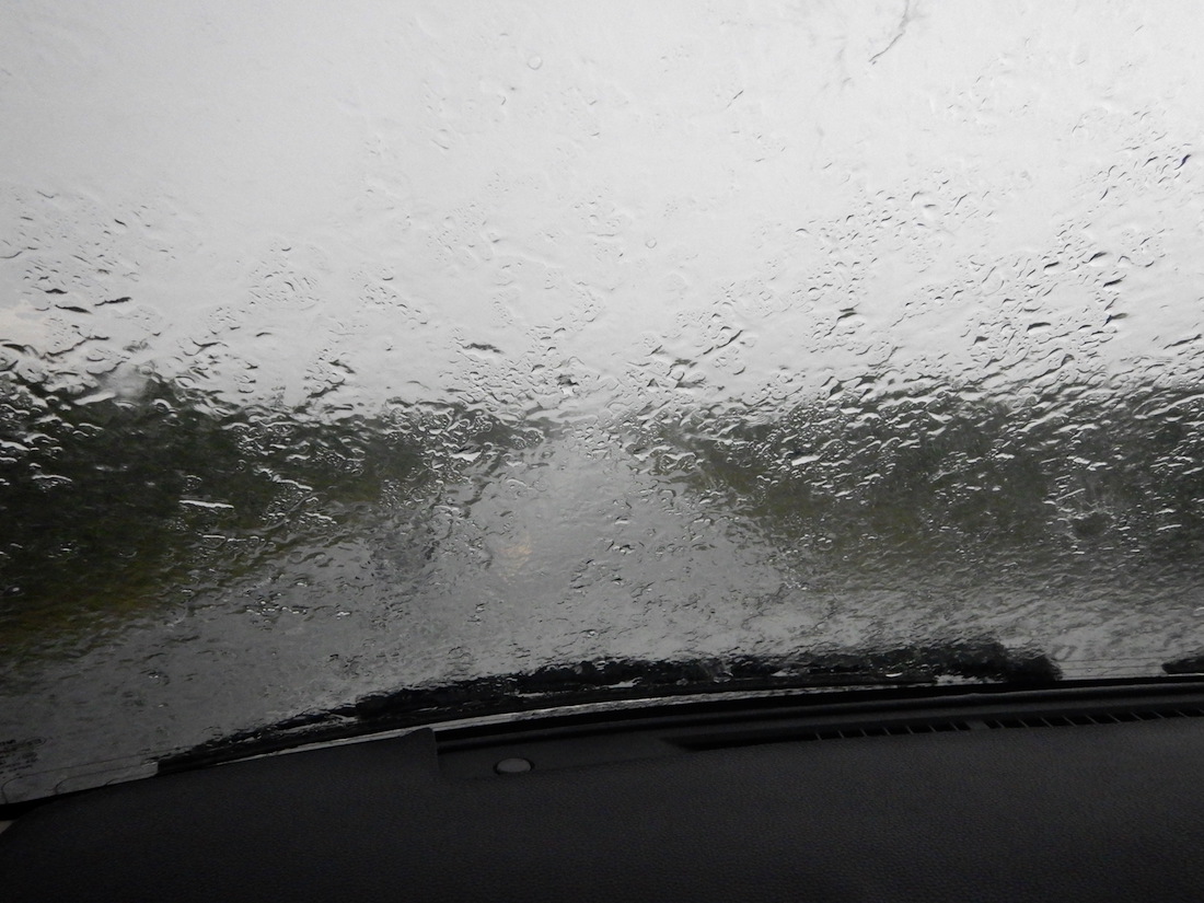 夕方になったら、前方にゲリラ豪雨。