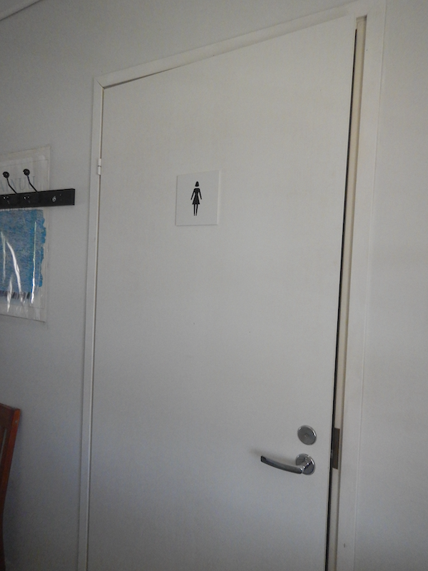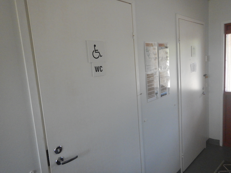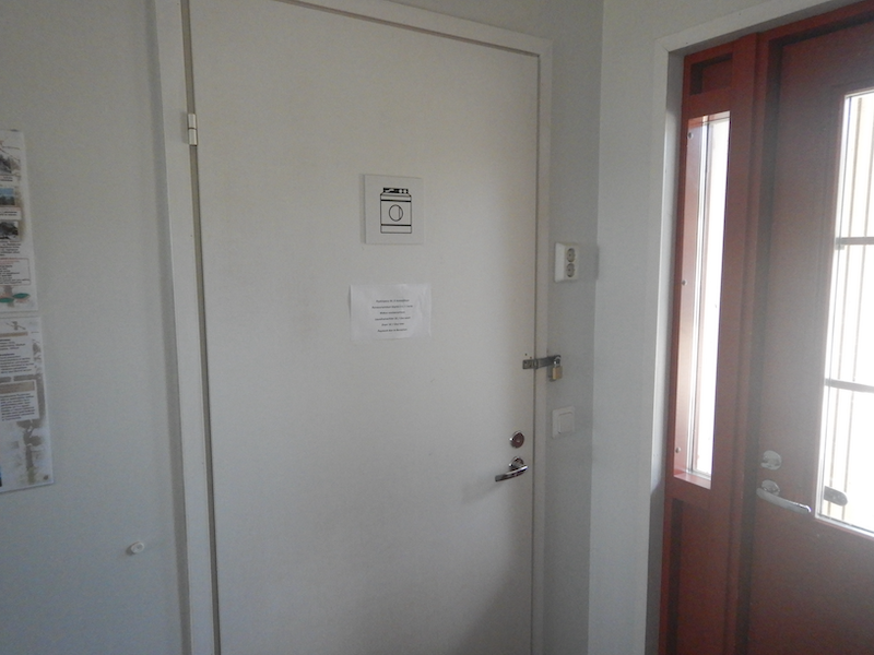 男子トイレの向かい側にランドリールームがあるけれど、鍵が閉まってます。