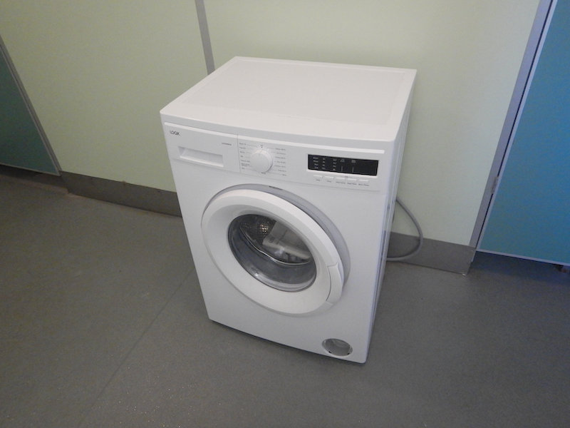 洗濯、乾燥それぞれ1回5ユーロだそうです。男子トイレ内の洗濯機も同じように使うのか?は不明です。