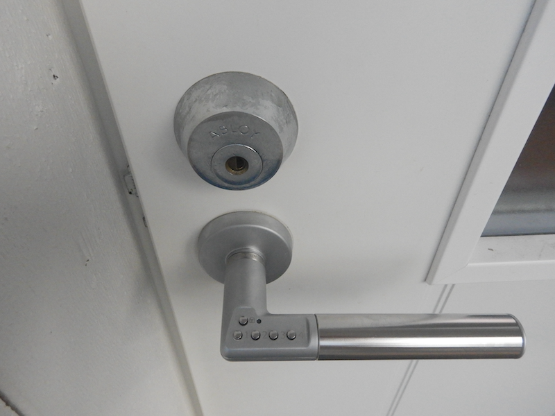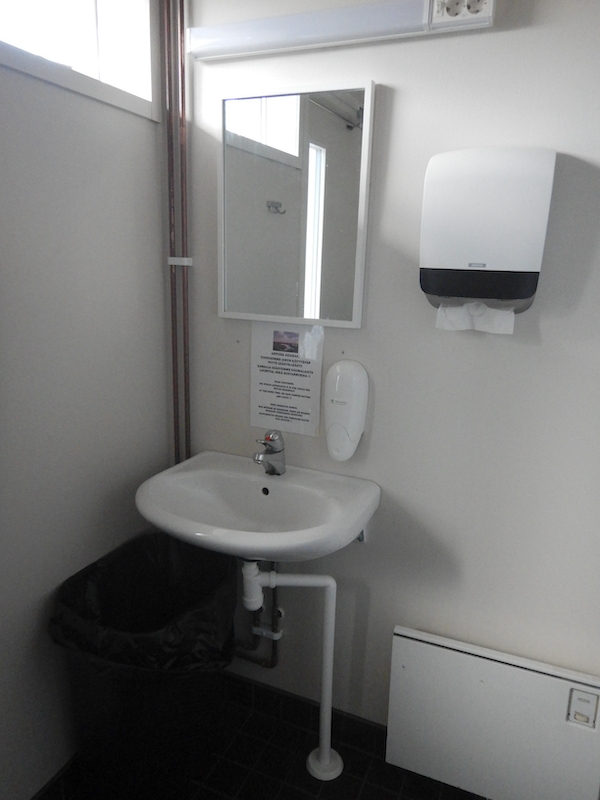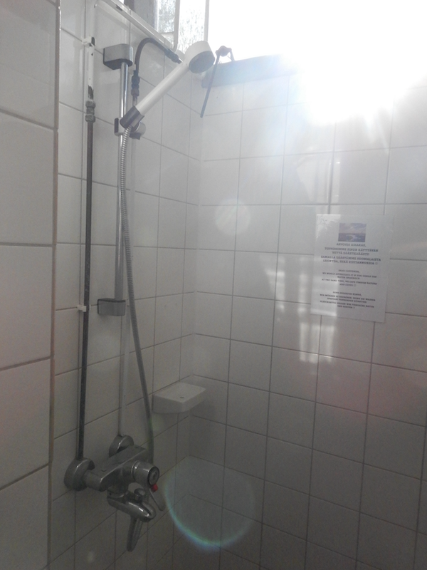 入り口のノブにパスコードが付いてます。たまたま半開きになってたから入れたけど、本来はパスコードを入力しないと開かないようです。もしかしたらここはキャビン泊の人用のサニタリー設備かも?