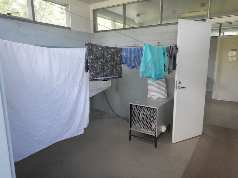 中に入ると洗濯物が干してあります。