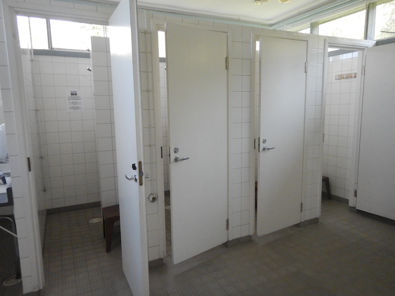 手前の建物はトイレ&シャワー。