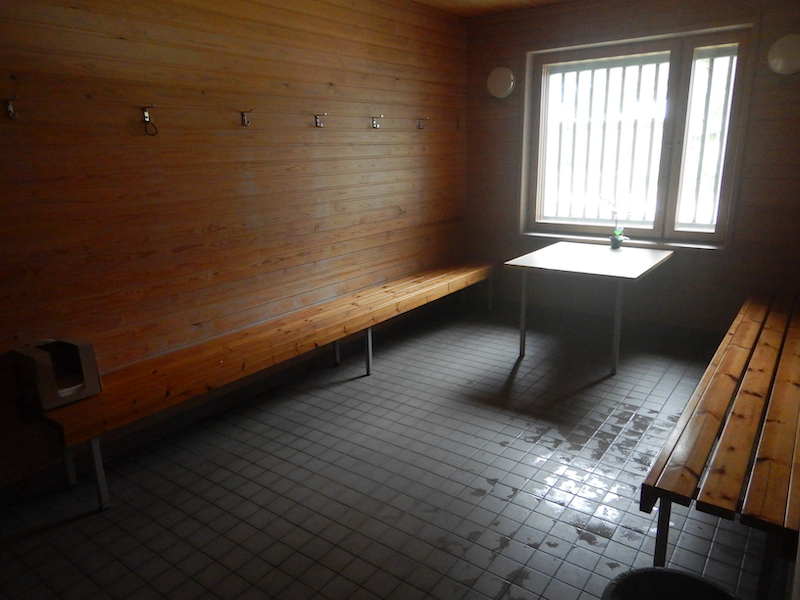 中に入るとまずこのようなスペースがあります。皆さんここで服を脱いで、ここに置いていきます。ロッカーなんてものはありません。