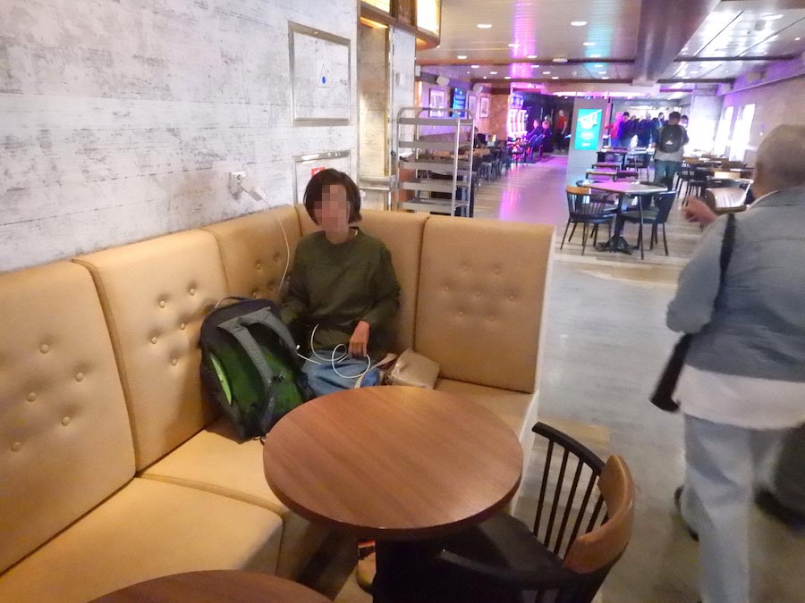コンセントは他の席にも多数ありますが、ソファー席は貴重。それ以外の席は背もたれが低いイスやベンチになります。