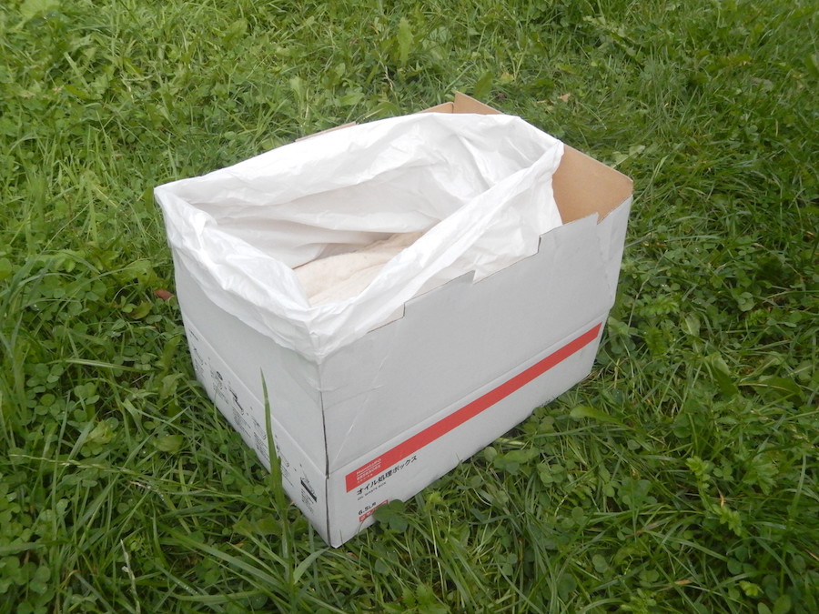 廃オイルは、日本から持ってきたMonotaroの廃オイル吸収パックに吸わせてキャンプ場の燃えるゴミ箱に捨てさせていただきます。