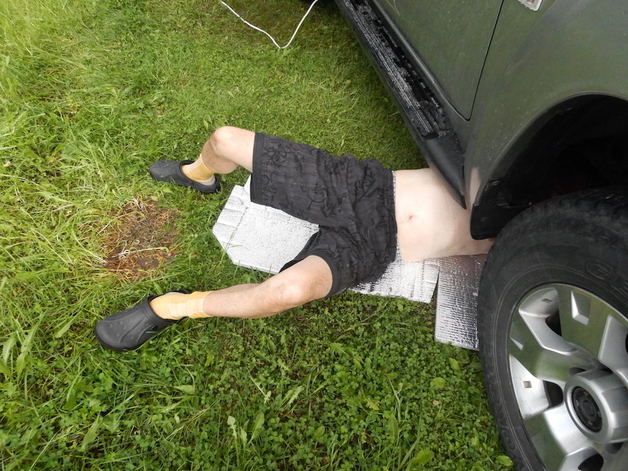 一張羅のTシャツ&ズボンをオイルで汚したくないので短パンでもぐる。お見苦しいものスミマセン。
