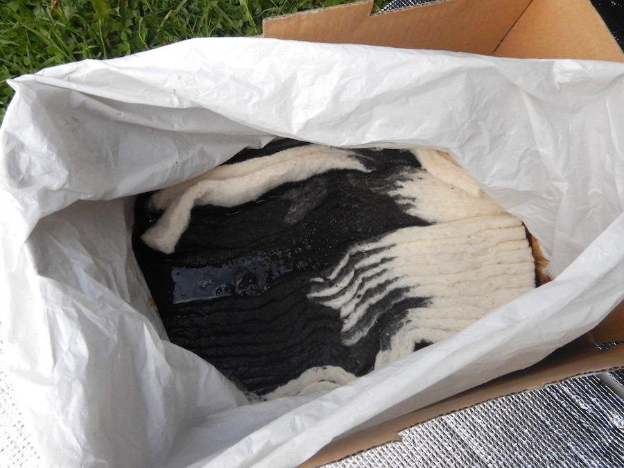 6L用の廃オイルパックに6.8L捨ててこのくらいになりました。充分な吸収量です。