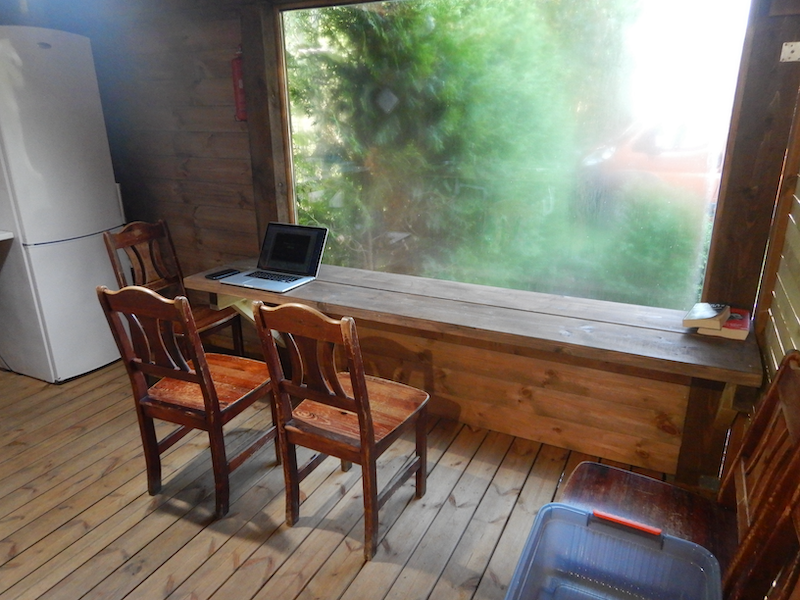 ささやかな食事スペースもあります。朝ここでネットやってたら、4人家族のお父さんに追い出されました。父は強し、です。