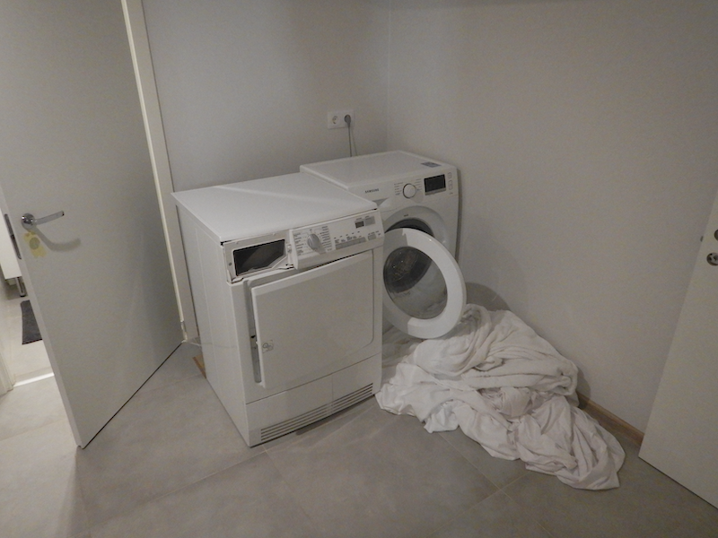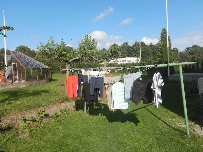 トイレの横に洗濯機があり、「使いたい」とお願いすると中の洗濯物を出してくれました。ありがとうございます。そしてGoogle翻訳で「乾燥機は壊れてるから、外に干すと早く乾く」と教えてくれました。