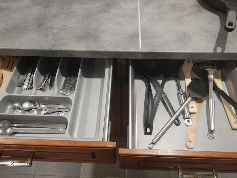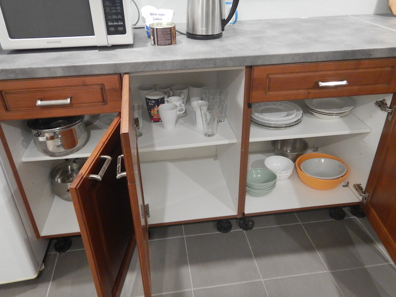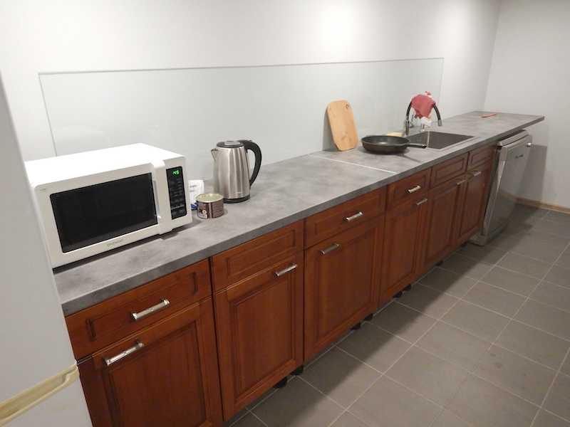 広くて電子レンジや湯沸かしポットもあるけれど、シンクは一つ。