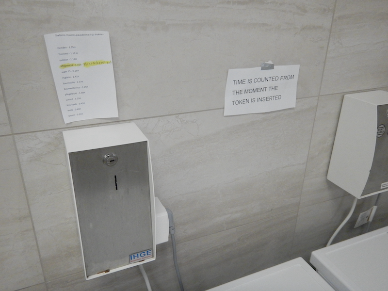 使い方はトークン制のようです。公式HPには洗濯、乾燥それぞれ1.5h / 3ユーロと書いてあります。詳しくはレセプションで確認してください。