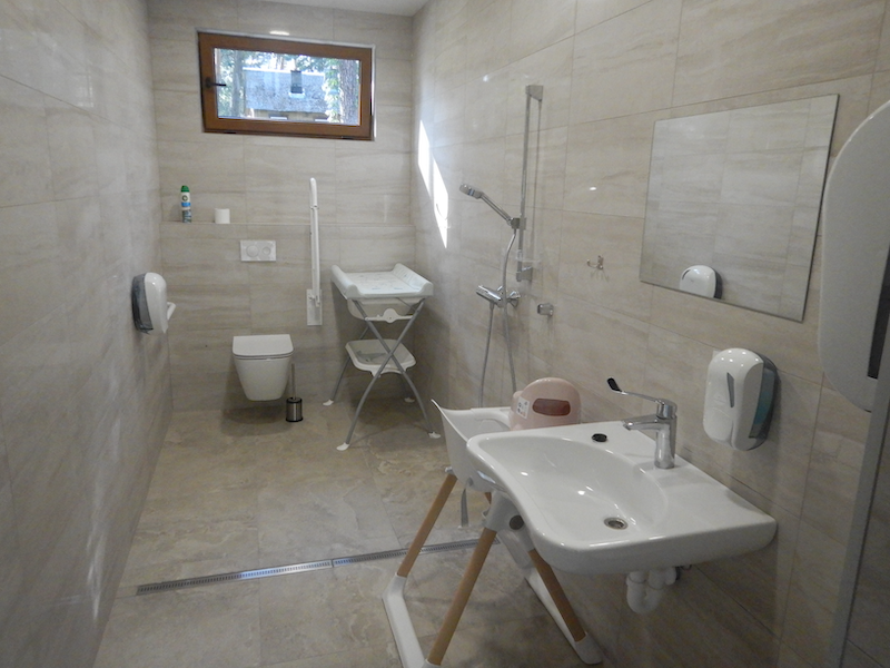 お隣はオムツ替えコーナーと、車椅子用のシャワー&トイレ。