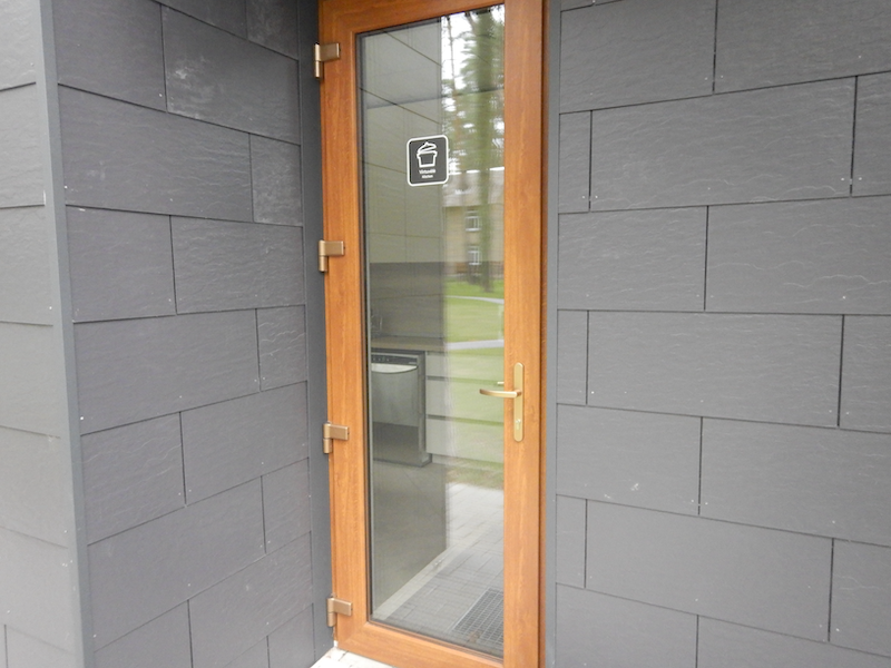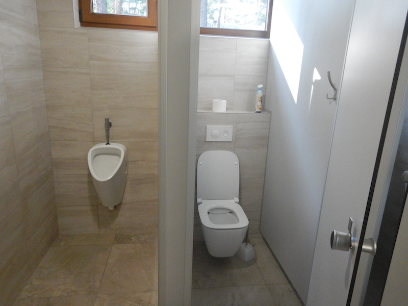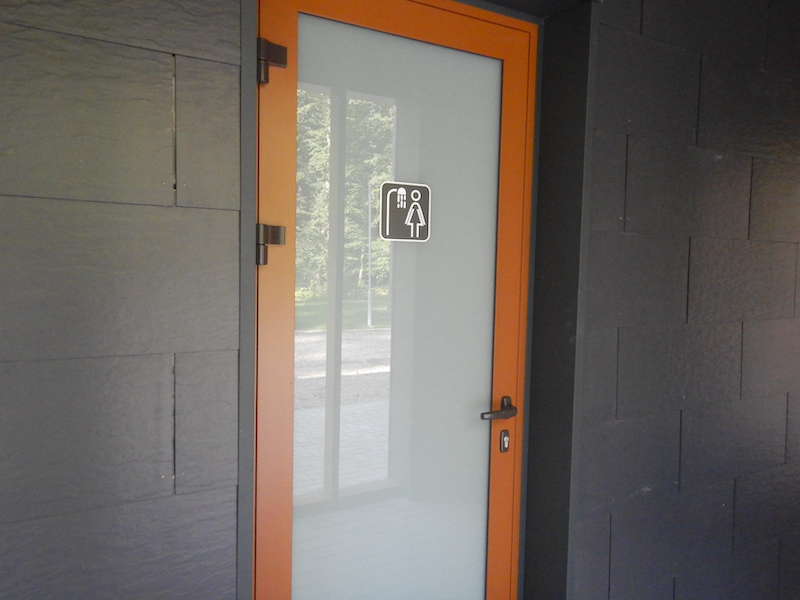 車を駐めた目の前がサニタリー棟です。おかげで車内でWifiがサクサクに繋がります。トイレも近くて便利です。
