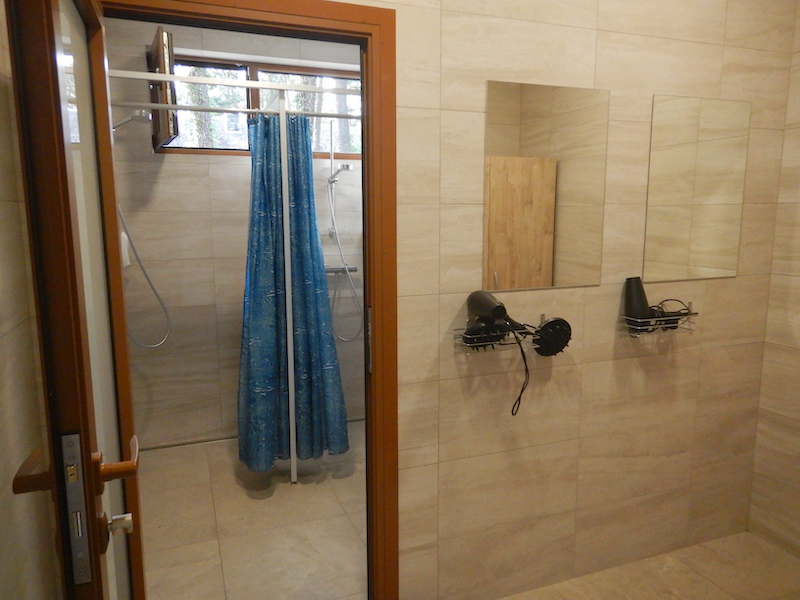 それからドライヤーが置いてあるけど、コンセントが近くに無くて探しちゃいました。さらに鏡のところに手洗い場がないのも地味に不便です。これなら他のキャンプ場のように、洗面台にドライヤーを付けてくれた方が便利かも、、、。