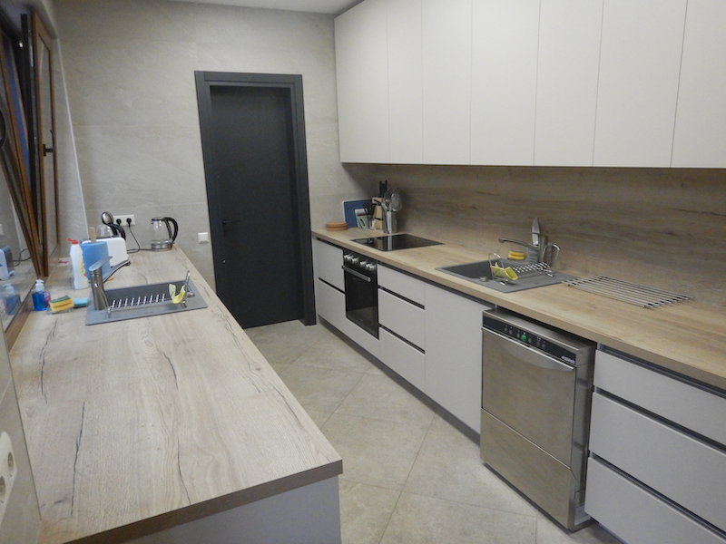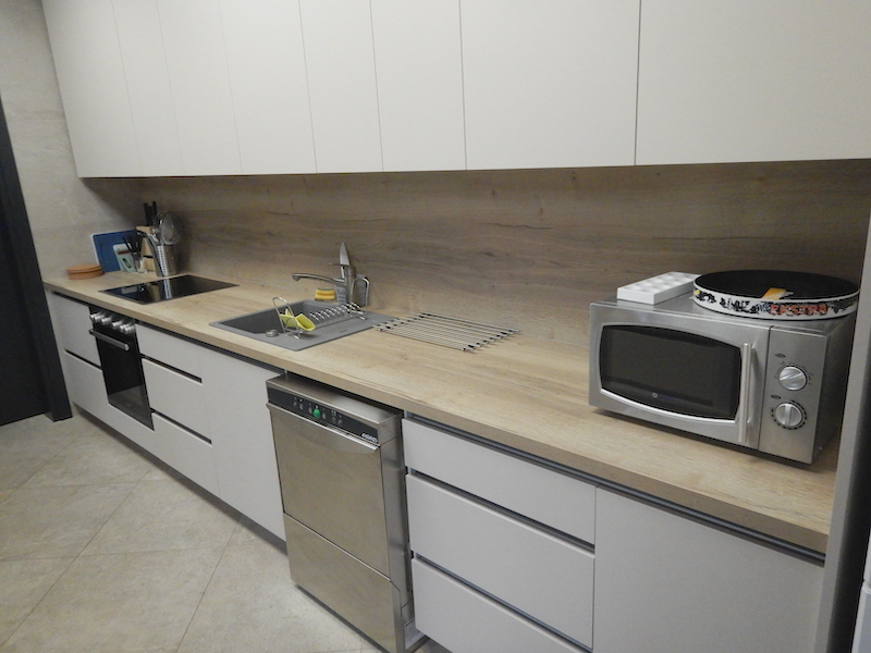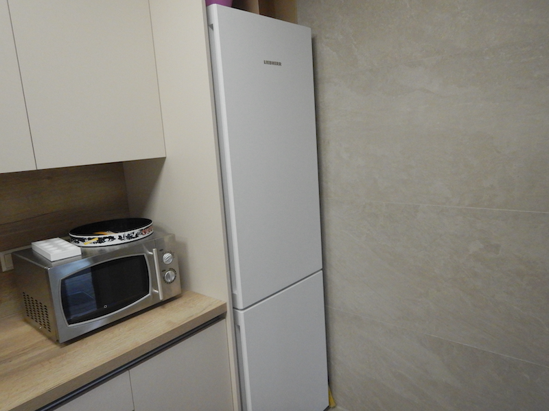続いてキッチンです。キッチンはトイレ&シャワーとは反対側にあります。