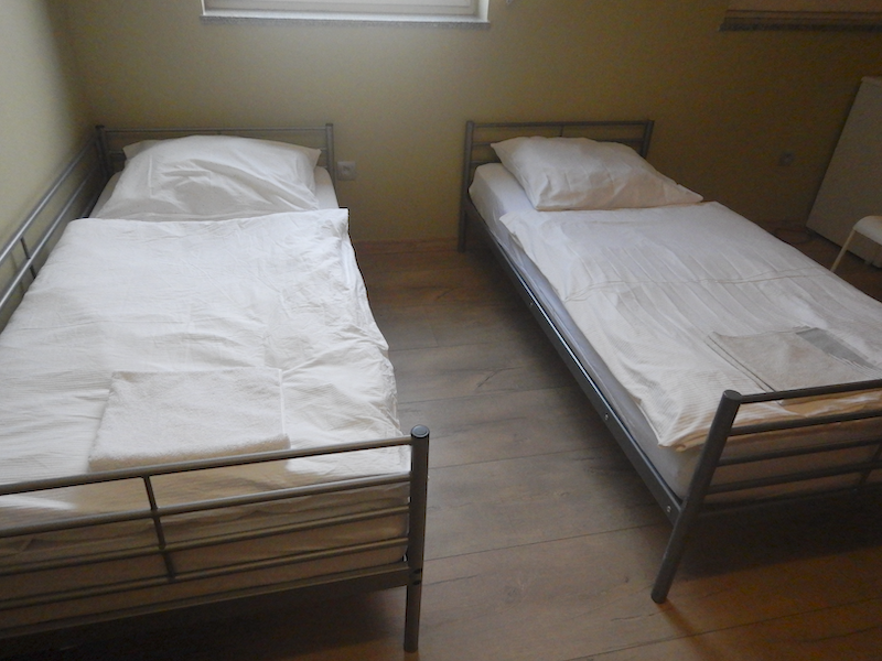 ヨーロッパでは ”ダブルルーム” と表示されているのに、部屋の説明には ”シングルベッド2台” と書いてあることがよくあります。ここもそうです。
