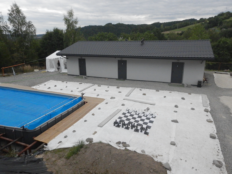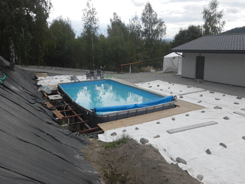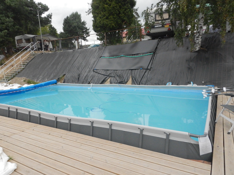 驚いたのはこのプール。ここまでしてキャンプ場にプールって必要でしょうか!?