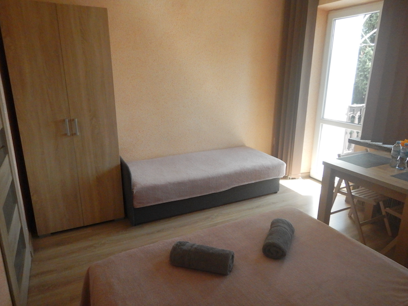 最初はわからなかったけれど、しばらくして他にもお客がいることに気付きました。トイレの奥の部屋だと思います。キッチンやバスルーム、トイレはこの部屋と共用みたいです。