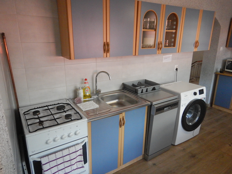 ガスコンロ、シンク、食洗機、洗濯機。
