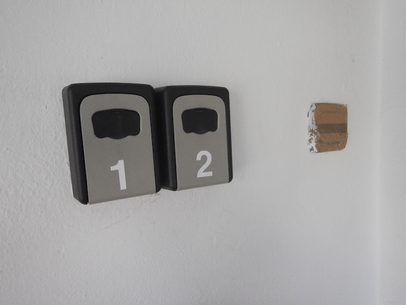 オーナーから送られてきたパスコードを入力したらキーボックスが開いて、中に鍵が入ってました。