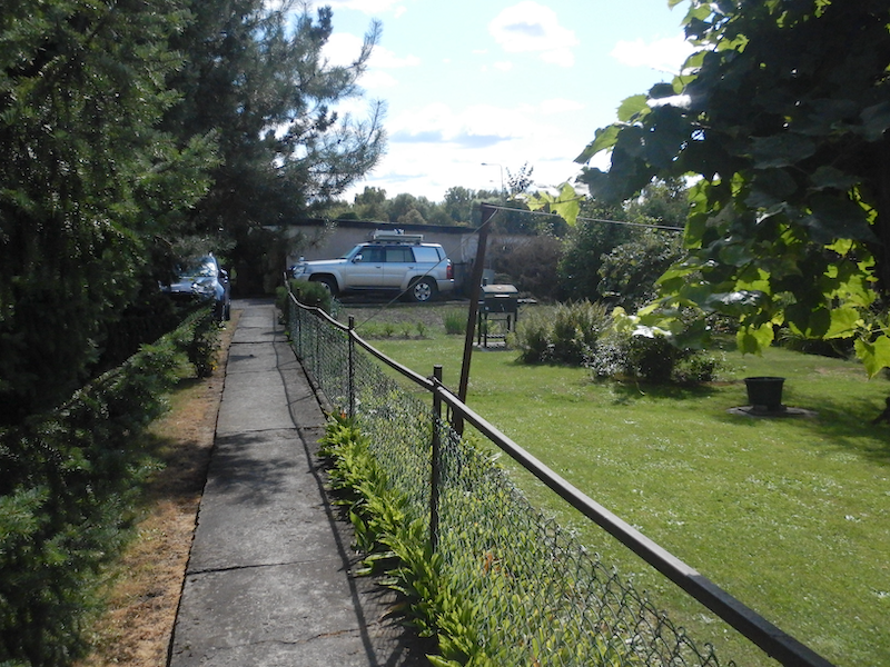 一緒に外に出て教えてもらいました。場所は簡単で、玄関前の小道をまっすぐ進むと、