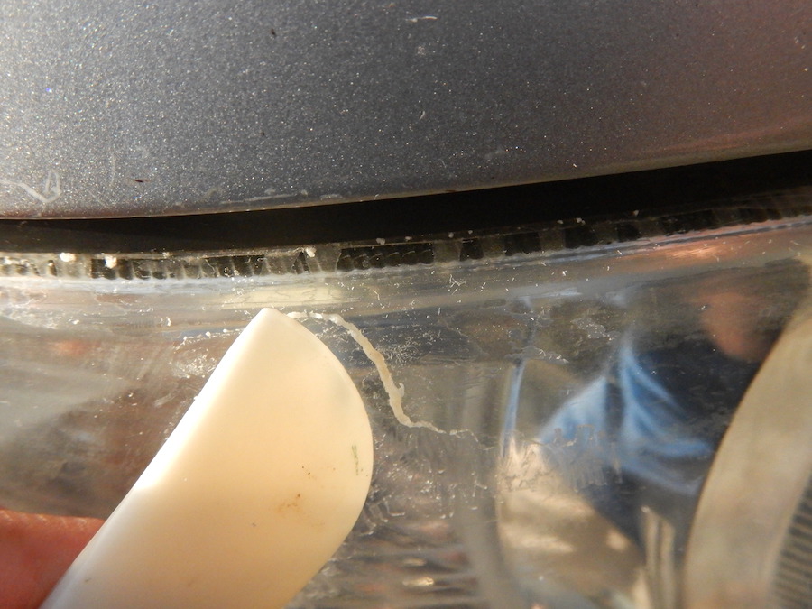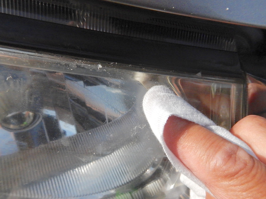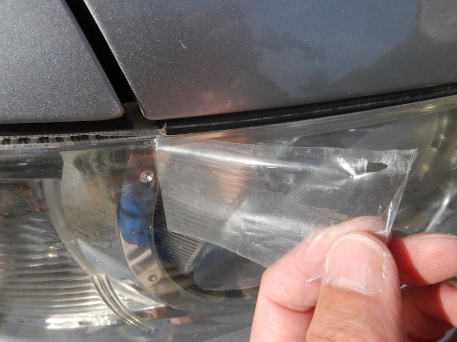 先日買ったパーツクリーナーで、ヘッドライトの白濁予防に貼ってあった透明テープを剥がしました。貼ってから半年くらいで剥がさないと、テープが劣化して剥がし難くなるのですが、今回は11ヶ月も経ってしまいました。
