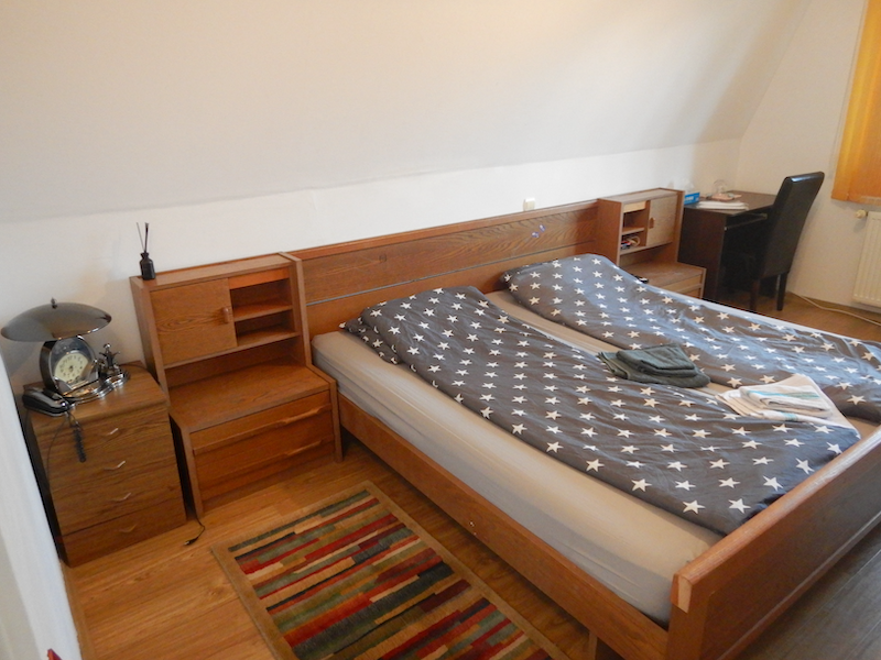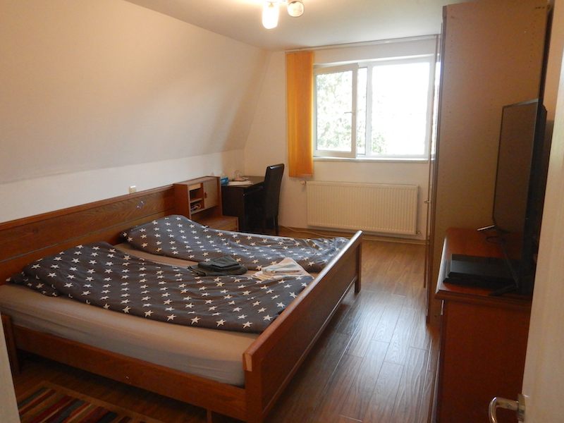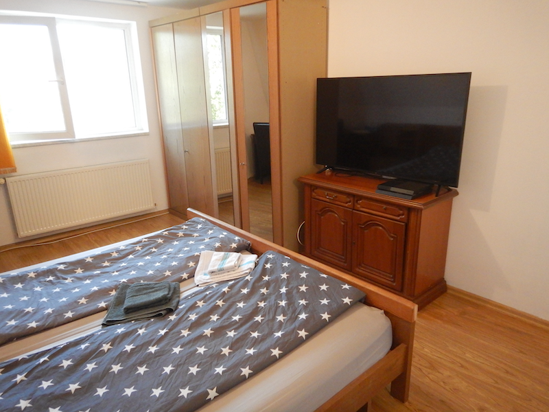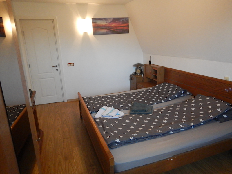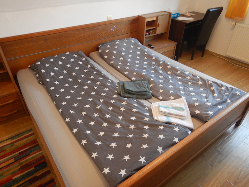 この民泊は部屋が3つあり、料金はすべて一緒(165ルーマニア・レウ / 約5,600円)だけど書かれている部屋設備の内容が少し違います。予約したのはプライベートバスルーム付きのデラックスルームでキングベッド1台。他の2部屋はダブルベッド1台のダブルルームで、プライベートバスルーム付きと共用バスルームがあります。