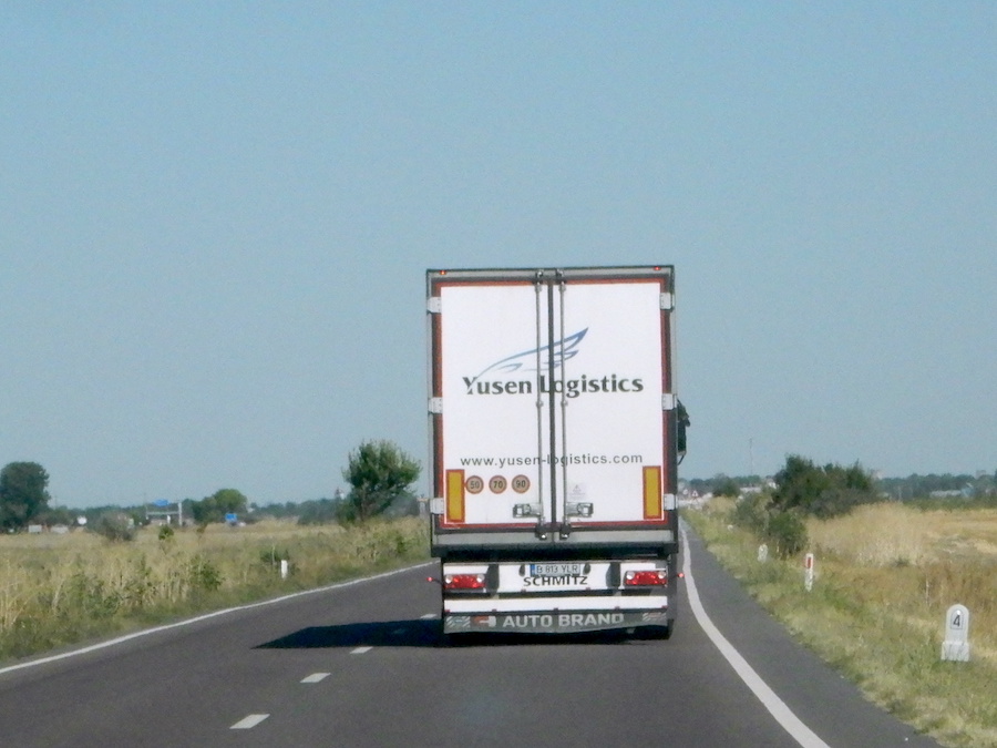 郵船ロジスティックスのトラックを見かけました。日本からの荷物でしょうか。ガンバレ!