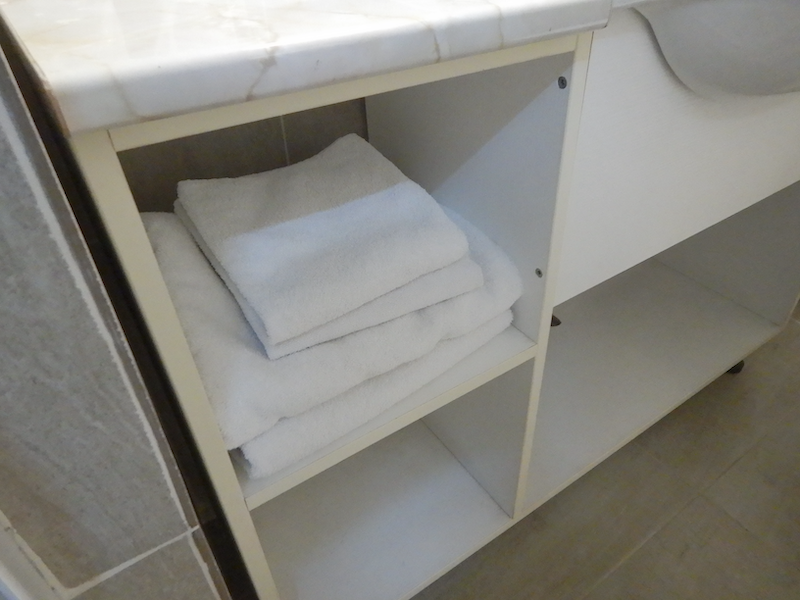 シャワーは青色の方に回すとお湯が出ます。最初はお湯が出ないのかと思いました。
