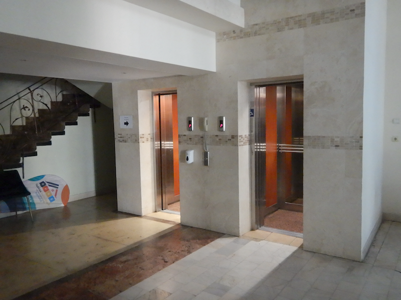 改めて、ぴーよしも一緒にチェックイン手続きを済ませて部屋に向かいます。エレベーターはボタンを押してから10秒くらい待たないと動き出しません。最初は壊れてるのかと思いました。