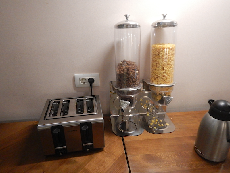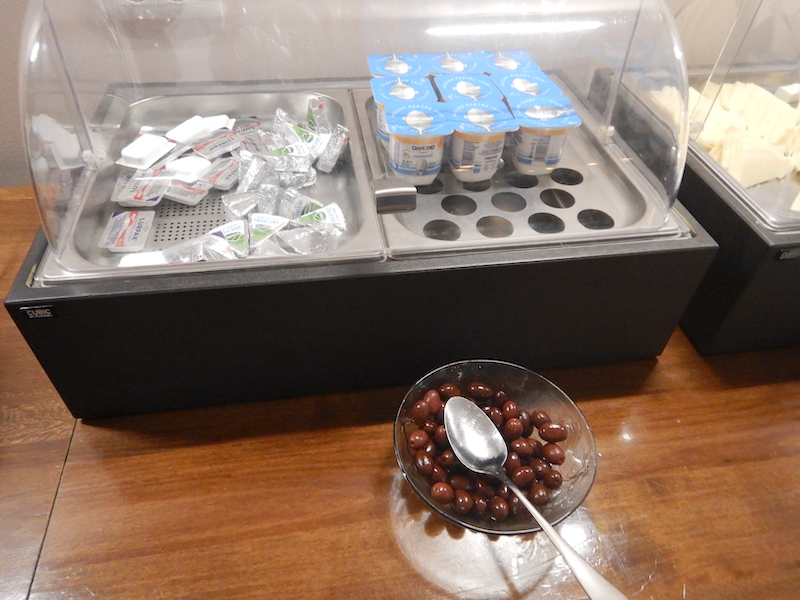端からシリアル。手前のポットの中はホットミルクが入ってます。