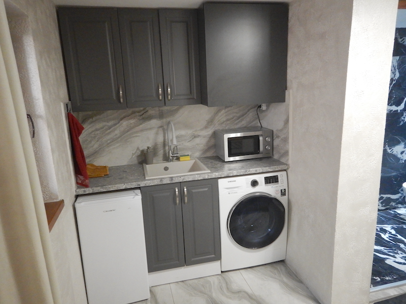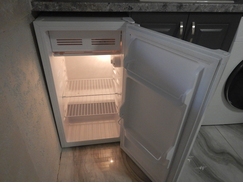 値段が安いから許すけど、全体的に愛情の感じられない部屋だなぁという印象です。キッチンはとりあえずあるけれど、置いてあるグッズが少なすぎて手ぶらで一晩泊まる人は何もできないと思います。