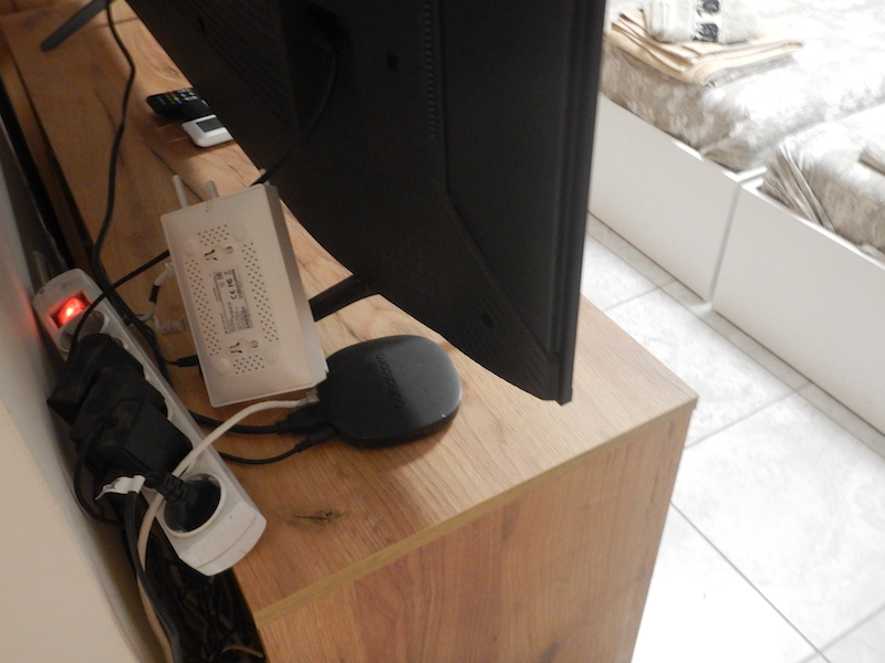 オーナーにWifiパスワードを聞いたら「テレビの後ろのモデムの裏側を見るように」と言われました。とてもすぐに読める大きさの文字じゃありません。オーナーは「写真撮って拡大して見て」と言います。そんなに小さい字なら、書いといてくれてもよくない?d( ̄  ̄)