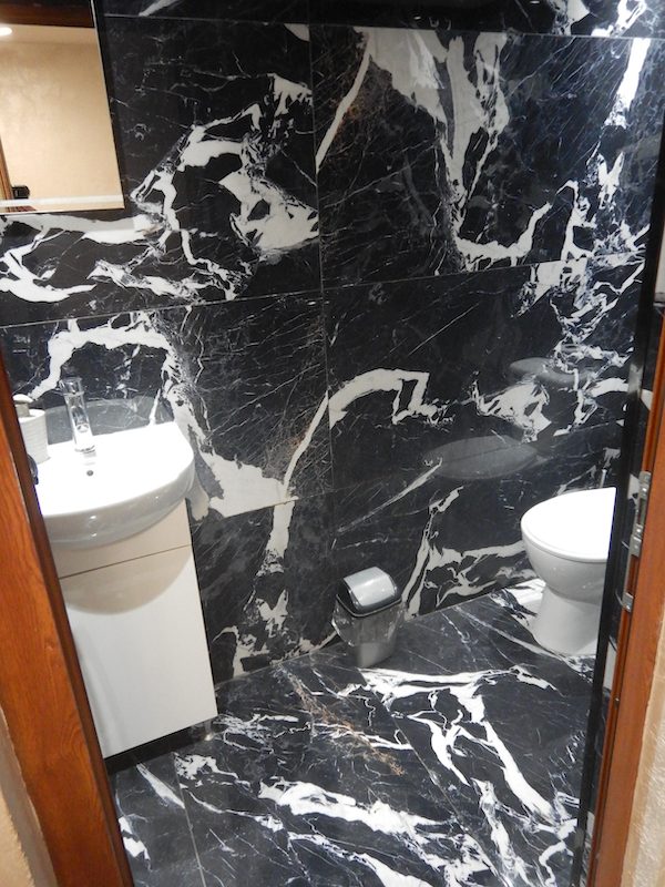予定より早く到着の連絡が来たから、慌てて部屋の掃除を済ませたんだよ ←と、オーナーは身振り手振りで説明し、濡れた床を指差します。慌てすぎてWhatsAppに反応できなかったようです。