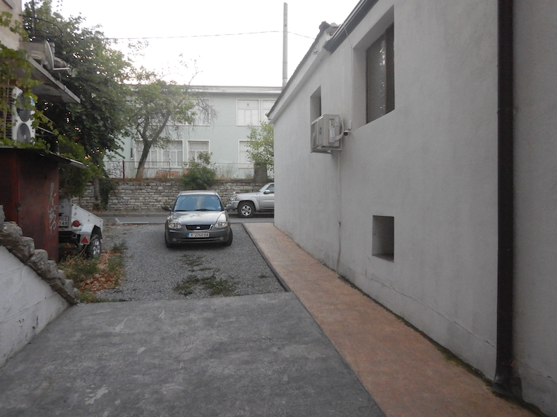 本当は建物横のこのスペースに駐めたかったけど、オーナーは路上を指差すので仕方なく路駐しました。