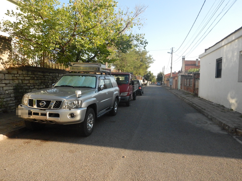 改めて車の駐車場所を聞くと「ここに路駐しろ」と言います。「安全なんですか?」と確認したら「後ろの車は俺の車だ」だそうです。つまり住人も路駐なんですね。