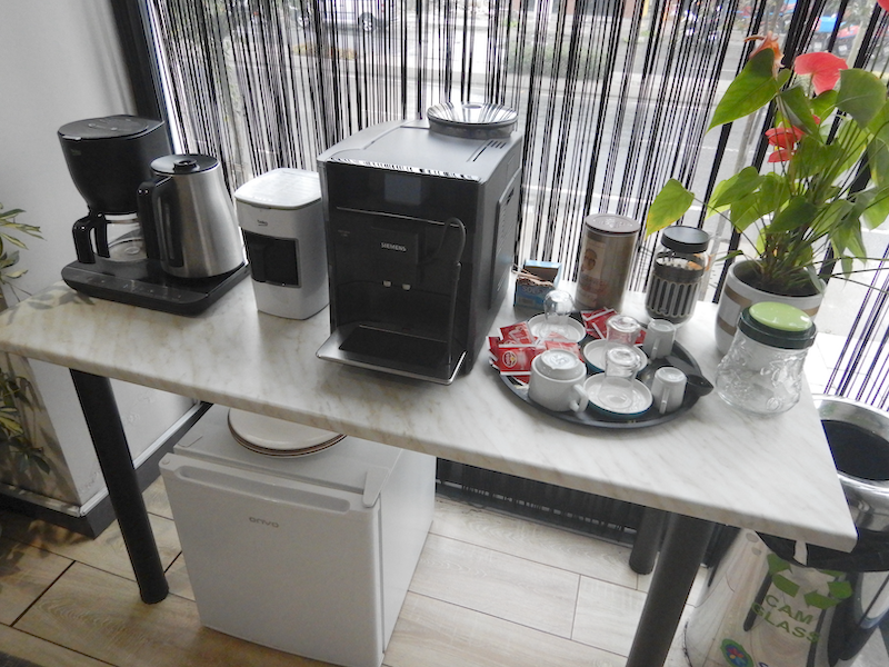入り口の横にドリンクコーナーがあり、1回コーヒーをもらいました。翌朝行ってみるとマシンの電源が抜かれてました。カップも2個しか置いてないし、飾りでしょうか?