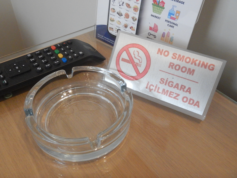 禁煙部屋だけど灰皿があります。