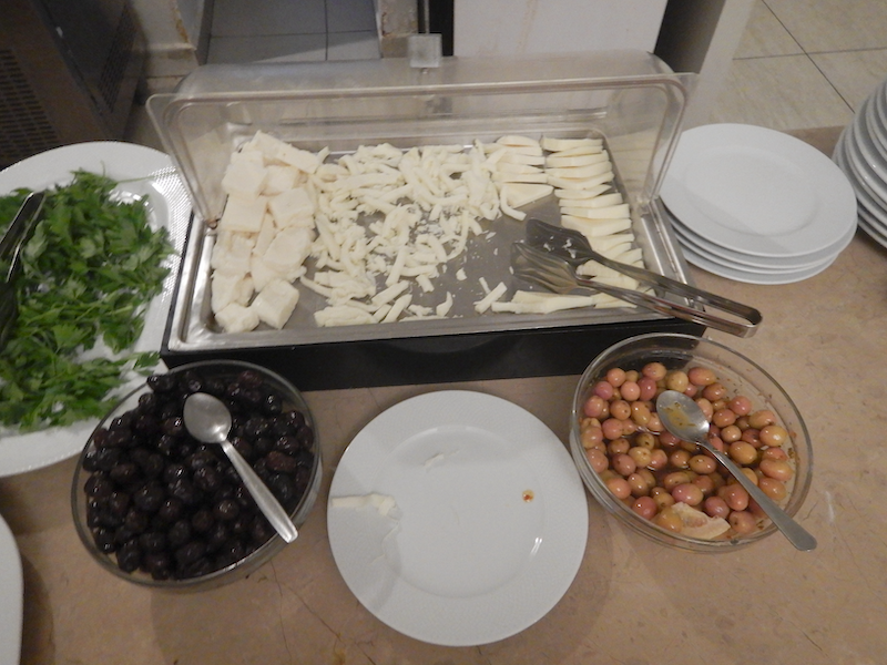 まずはチーズとオリーブ。今日はチーズの種類が豊富です。