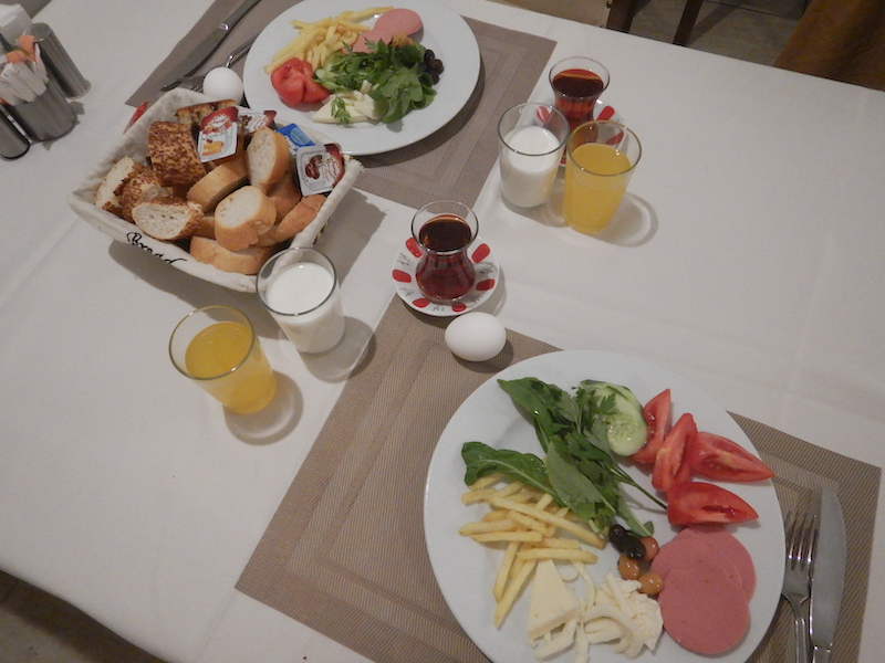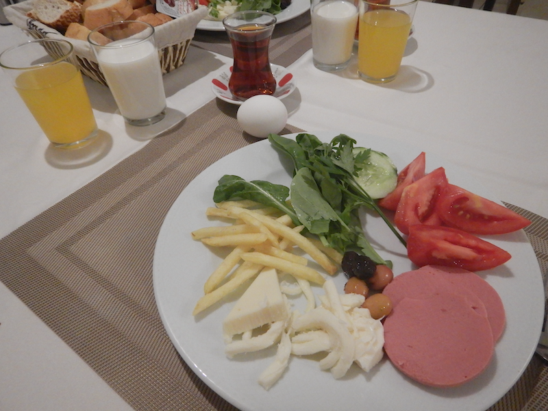 ほぼ全部盛りでこんな感じ。毎日ホテルを変えても朝食内容は同じなのがトルコです。