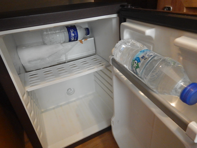 冷蔵庫内にも水ペットが一本入ってます。奥の水ペットは前の客の忘れ物です。それから冷蔵庫は冷えが悪いです。冷えてたビールがぬるくなりました。