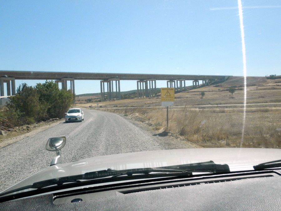 有料高速道路迂回中。迂回路はまさかの未舗装。