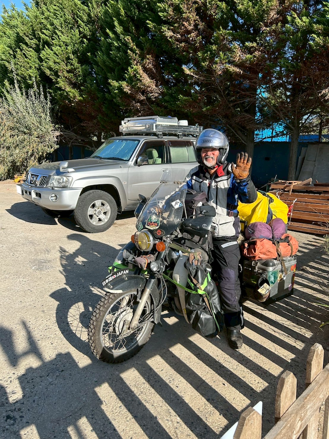 身体にひねりが入っているあたりまさに人馬一体。それとも重たいバイクを気持ちで押しているのか。