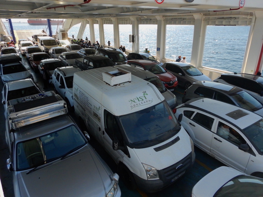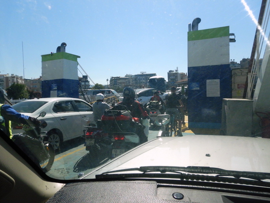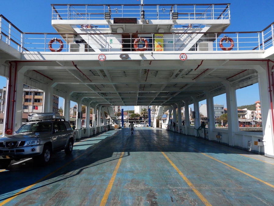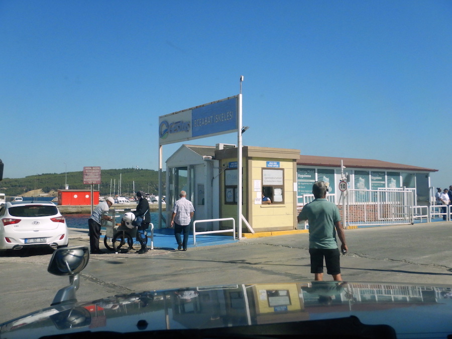 フェリーチケットは、黄色い小屋(↑)に車で乗り付けて買って、そのまま車ごと乗船します。料金は車+二名で580トルコリラ。