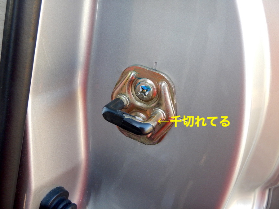 でも作業後に気づいたのですが、ドアストライカーは交換しなくても、古いヤツを上下逆さまに取り付ければ、千切れていない内側の樹脂部分がドアラッチに当たるようになるので、それでOKだったかも。