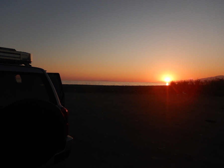 しょうが無いので隣の海岸へ行ってみると、数台の車が車泊してます。ゴミも落ちていて決して良い環境とは言えませんが、今夜はここに決定!