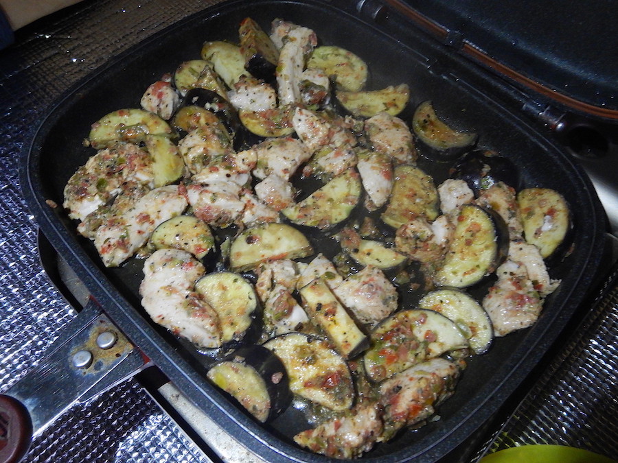 今日の夕食。ぱーが今朝ホテルの部屋で仕込んでくれた鶏肉を焼きました。