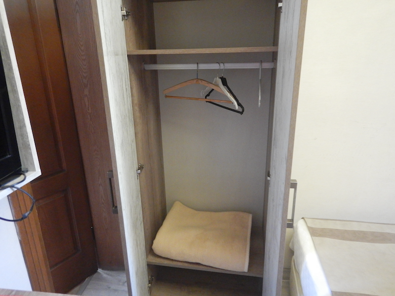 クローゼットの中には毛布が入ってます。ベッドには今日も布切れ一枚です。